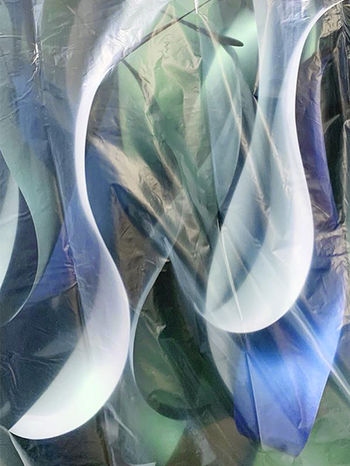 Réalisation d'une salle immersive d'algue Kelp en papier irisés pour l'espace Spa du pop-up store de la maison La Mer.